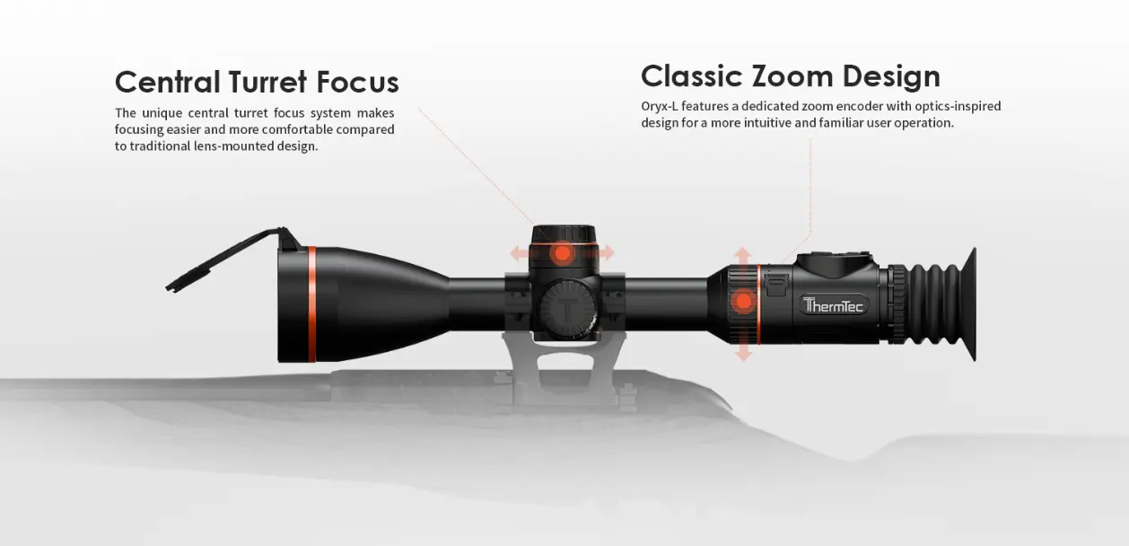 The Oryx-L 650 takes performance further with a highly sensitive thermal NETD ≤15 mK sensor and vivid OLED display for precise long-range observation. Featuring the ThermTec AutoSight System (TASS) for seamless zoom and built-in laser rangefinder for pinpoint accuracy, it delivers precise targeting and reliable shots. With extended detection up to 2,600 meters, higher magnification, and durable battery life, the Oryx-L 650 is built for hunters who demand clarity and accuracy at greater distances.