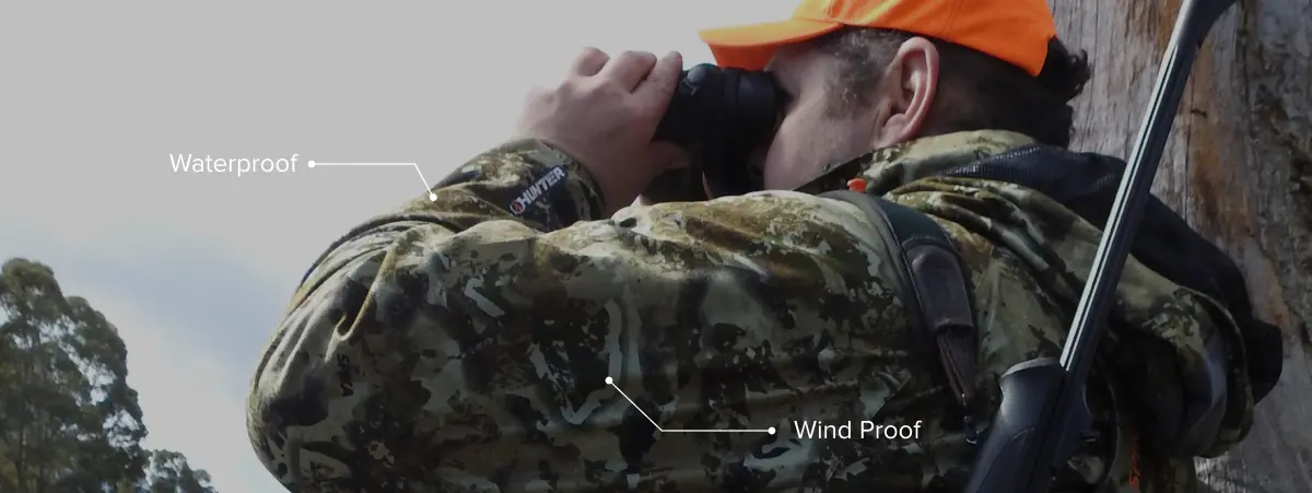 Stay dry and comfortable in the Spika Valley Waterproof Jacket. A functional jacket for the everyday hunter utilising Hydroshield weatherproof membrane and DWR treatment to create the ultimate barrier. Featuring a full length YKK zip and storm flap, peaked hood, front pockets and elastic cuffs to provide protection from harsh elements. Durable yet quiet microfuse outer fabric allows stealthy movement while stalking and being active.